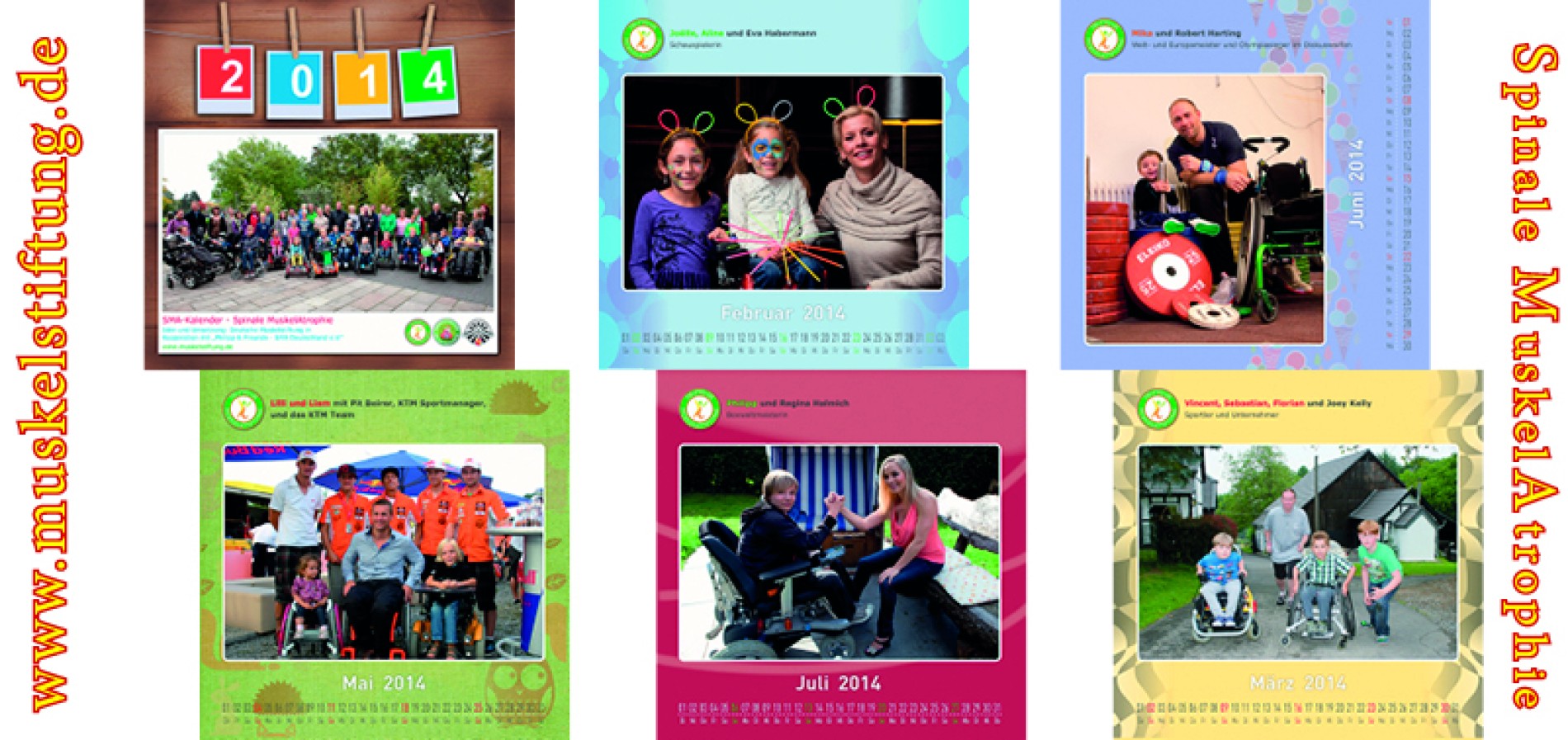 Unser Jahreskalender 2014 mit SMA-Kindern und Prominenten kann jetzt bestellt werden. Nachfolgend eine kleine Auswahl der Kalenderblätter für das kommende Jahr. Wenn Sie auf das Bild klicken, dann können Sie sich den Kalender in einer Diaschau ansehen.