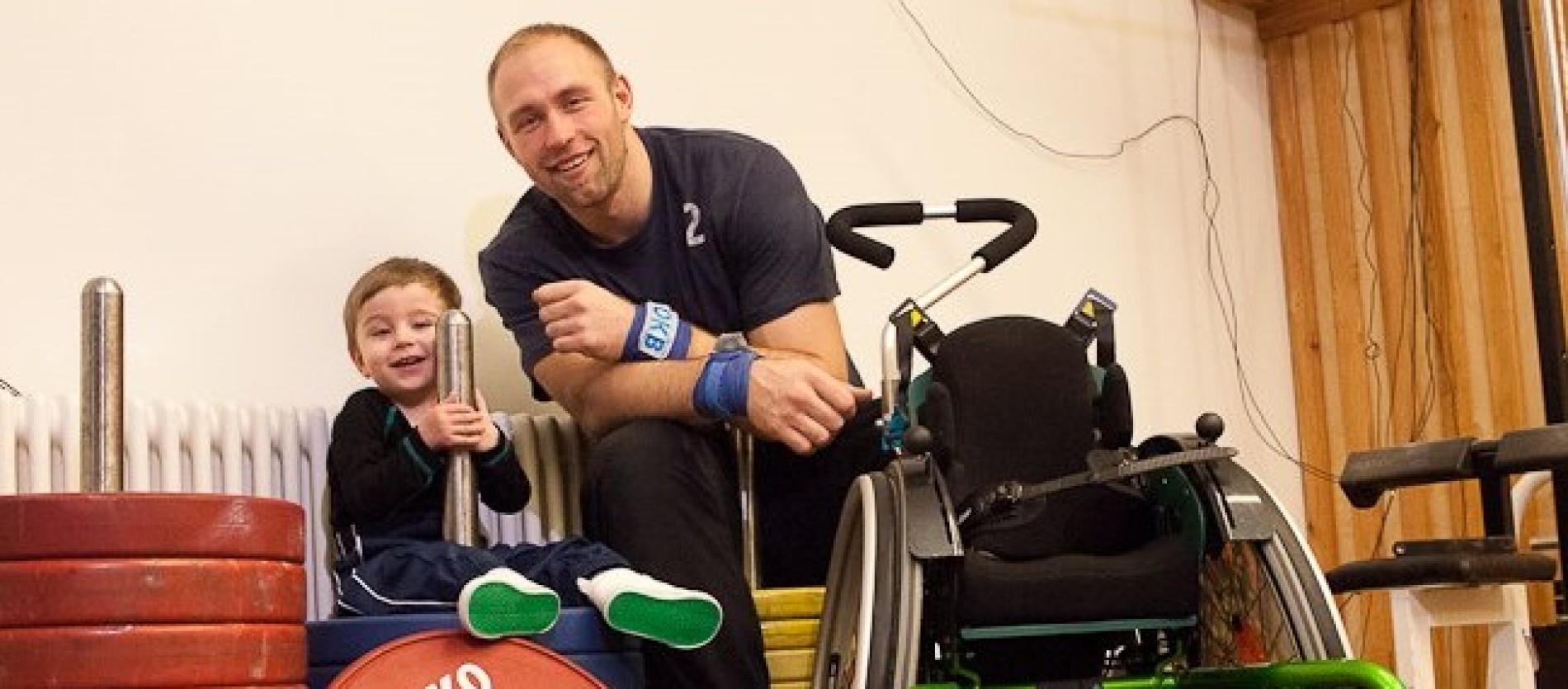 Mika mit Robert Harting beim Fotoshooting